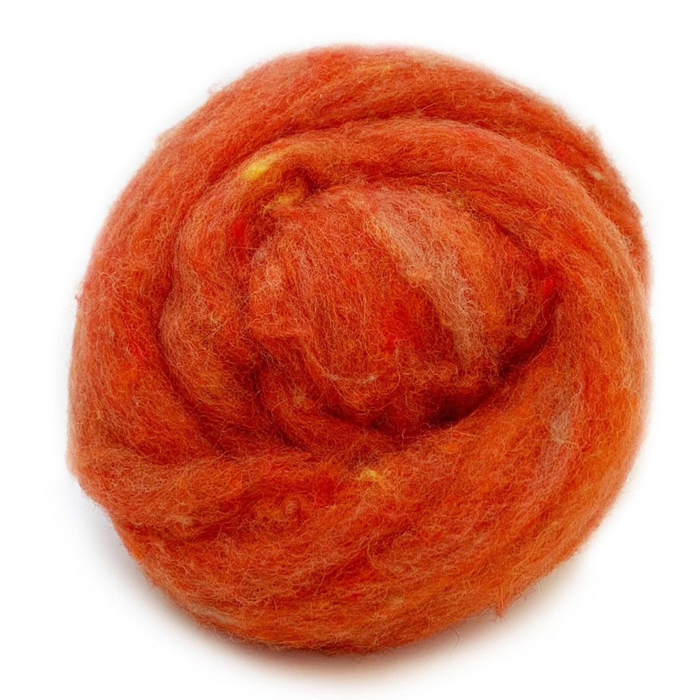 It's taken us years to find just the right wool for needle felting! Here it is, and now you can use it in your creations also. One thing we think you will love, is that most of these colors (with the exception of White, Red, and Back) are heathered with flecks of other colors, this makes them wonderful for needle felting as they hide needle pock marks beautifully, and give a great depth and richness of color!